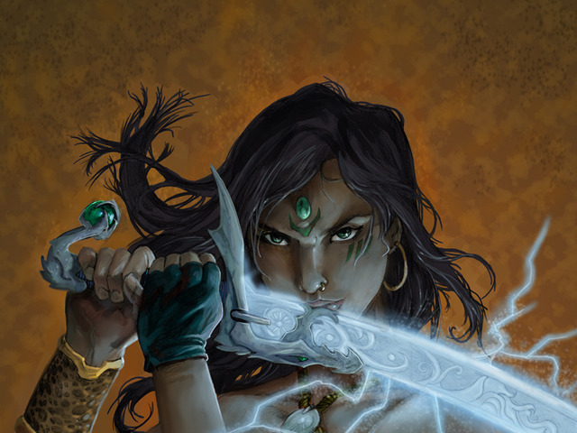 Orna, the sword of Tethra, tells the hero who picks it up the stories of all its murders... thousands upon thousands...